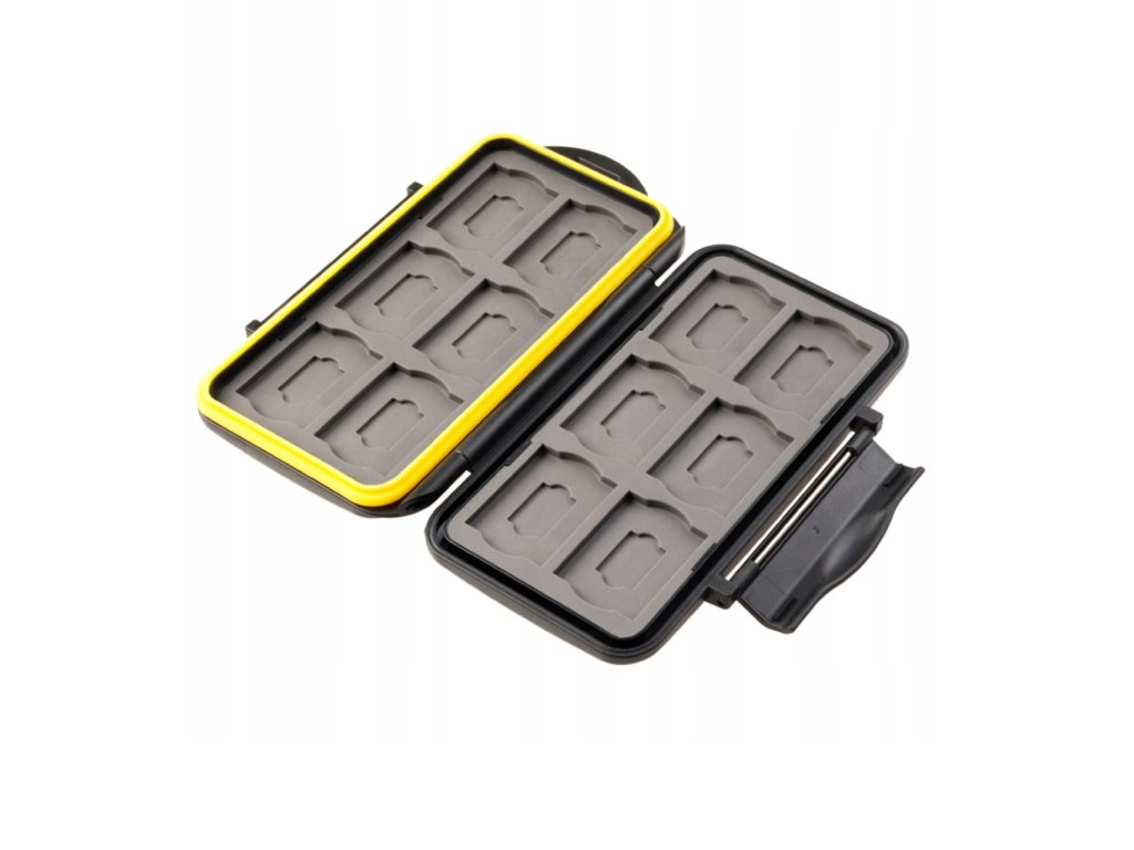 Púzdro na pamäťové karty naraz odnesie 12 pamäťových kariet veľkosti SD + 12 microSD kariet. Pred poškodením chráni vaše dáta pevný plastový obal, a gumové tesnenie. Pamäťové karty preto ochráni aj v náročných podmienkach. Puzdro sa mechanicky pevne uzavrie plastovým zámkom.